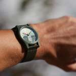 特筆すべきは素材使い。ケースに使用されているプラスチックとストラップに使用されているナイロンは、どちらもオーシャンプラスチック(海洋プラスチック)をリサイクルしたもの。6時位置にあしらった“POW”の大きなロゴマークとともに視界に入るたび、地球環境に対する意識を心に刻めます。
