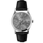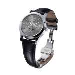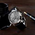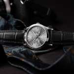 スーツに合わせやすいベーシックカラーという点においてはこれまでのカラーと同じですが、艶やかに磨き上げられた316Lステンレススティールケースの質感や、モダンで都会的なカレンダーのフォント、重厚な印象の型押しレザーストラップと相まって、格別にシャープで洗練された印象を与える仕上がりです。