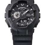 ゴツゴツとした質感とマットなブラックカラー、大径の時計ケースが生み出す抜群の存在感は、カジュアルやアウトドアシーンにピッタリとマッチしそう。ケースサイズは55×51.2×厚さ16.9mm、重さは81gになります。