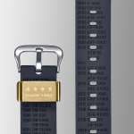 4モデル共通仕様として、裏蓋にはアニバーサリーロゴを、またバンド部分には凹凸の出るホットスタンプで型番をプリント。