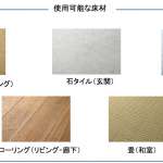 これにより、掃除機でも吸いにくい細かい砂や花粉、ペットの毛、固まった汚れ、液体の染みまでさまざまな汚れに対応。フローリングのほか、カーペットタイル式のリビングや畳敷きの寝室、石タイル張りの玄関なども掃除できます。