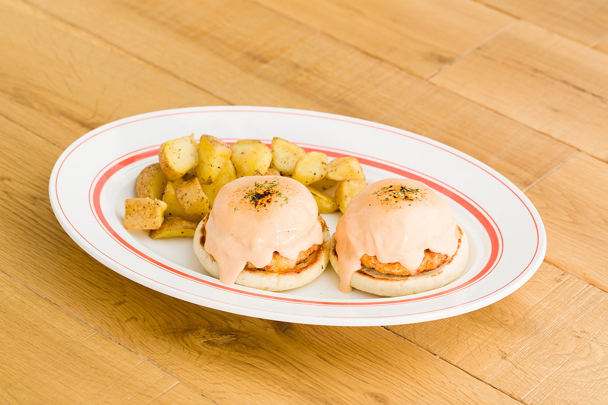 「クラブケーキベネディクト ~ハニーオーロラソース~」(1674円)は、カニがたっぷり入った自家製クラブケーキを、エッグスベネディクトに仕上げた。カニの旨味に意外とぴったりハマるハニーオーロラソースは、味わってみる価値アリ!