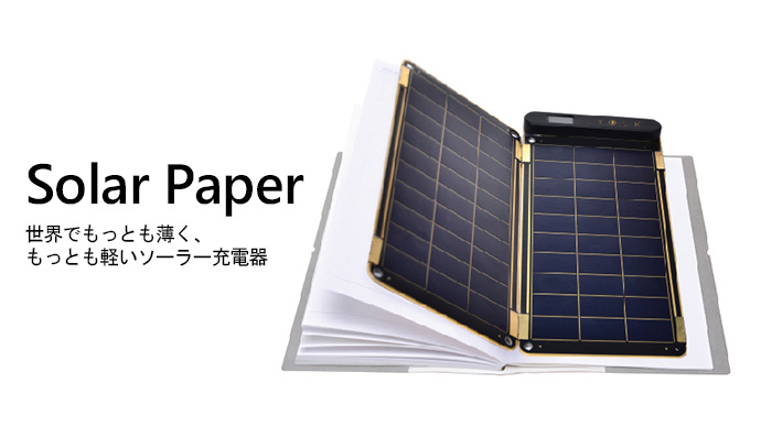出先でスマホが充電切れ! こんなとき、無駄に暑いこの陽射しをエネルギーにできれば…。そんな夢のような願いを実現するアイテムがついに登場! それが、世界でもっとも薄くて軽い「Solar Paper(ソーラーペーパー)」だ。