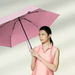 生地は280T高密度ポリエステル生地を採用し、撥水加工、防水加工、遮熱加工、UPF50+UVカット加工の晴雨兼用で、紫外線を99.9%カット。UVA/UVBのカットはもちろん、10℃以上の遮熱効果を期待できます。