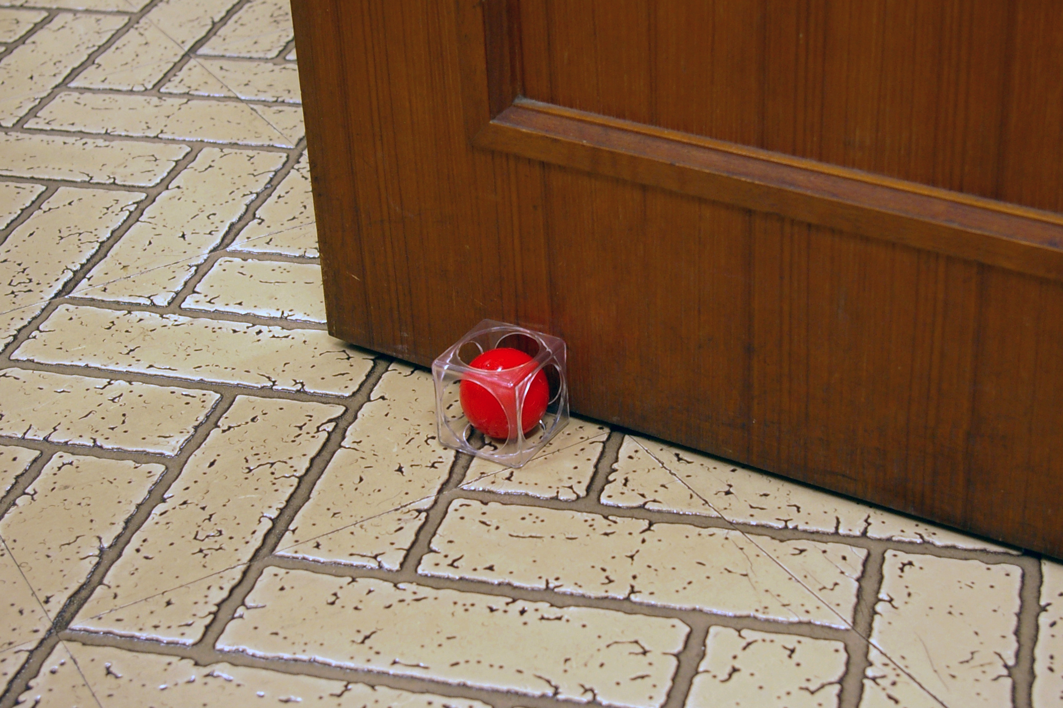 一辺が50㎜の透明なキューブにボールが入った、ちょっと不思議な「DoorCube ドアキューブ」。36gという軽量にもかかわらず、ポイッと少々無造作にドアの前に転がすだけで、どの面が下になってもドアを強力に抑えてくれるのです。わざわざ屈みこんで挟むという動作も必要ないのでラクラク。