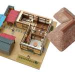 「マイクロドールハウス 農家」は、リアルな鉄道模型用建物に、紙で精密に表現された「内装」をプラスした新しい模型です。外観はプラスチックで、頑丈で組み立てやすいというこれまで通りの使い勝手の良さをキープ。一方で部屋の内装や家具は、紙ならではの細やかな作り込みで、これまでできなかった表現を実現しました。