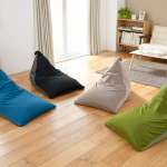 カラーバリーエーションはリーフグリーン(GR)、オーシャンブルー(BL)、サンドベージ(BE)、ストーングレー(GY)の4種類。スタイリッシュでポップなツートンカラーなので、お部屋にぴったりの色を選べます。「マッサージャーCMD-8000」はビーズクッションのみで、「マッサージャーCMD-8001」はビーズクッションに着脱可能なフットレストが付いた、プラスバージョンです。