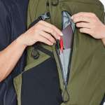 フロントポケットはサイドに止水ジッパーを搭載し、リュックを前に抱えたときにアクセスしやすい仕様。