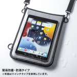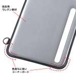 ケース本体は衝撃を吸収するポリウレタンと低反発ウレタンで構成され、表面にはクリアなポリ塩化ビニルを配置。ケースに入れたままの状態でタブレットの画面操作を行えます。簡易防滴(完全防水ではないので水没はNG)・防塵性能を有しており、水回りや屋外、倉庫などでも安心して使用できます。