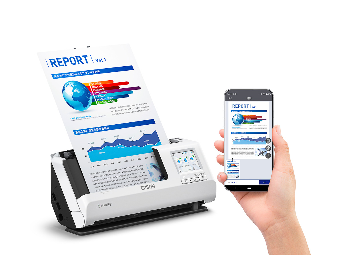 こうした状況の中、エプソン販売から7月上旬にA4ドキュメントスキャナー「DS-C480W」(4万4800円)が発売されます。デザインを一新し、省スペースで多様な書類をデータ化できるよう進化しました。