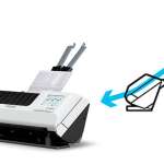 スキャン時の給紙方法はUターン給紙とストレート給紙の2種類。Uターン給紙は、スキャン済みの書類をスキャナー下部ではなく上部に排出するため、排紙スペースが不要。そのため、空きスペースの少ないデスクや受付カウンターなどの狭い場所でも設置でき、スキャン作業を効率的に進められます。