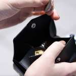 財布はW68×H98mmと手のひらサイズ。スーツやYシャツのポケットにもスッポリ納まります。コンパクトでありながら、小銭20枚、紙幣8枚、カード4枚を収納可能。すべて収納しても、財布の厚みは28mm以下です。