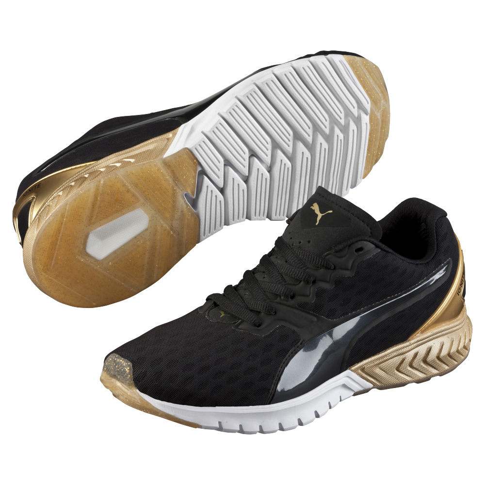 「プーマ イグナイト デュアル ゴールド ウィメンズ」(1万3500円)はベースがブラックとホワイトの2色展開。どちらもヒール部分のゴールドカラーが印象的なデザイン。
