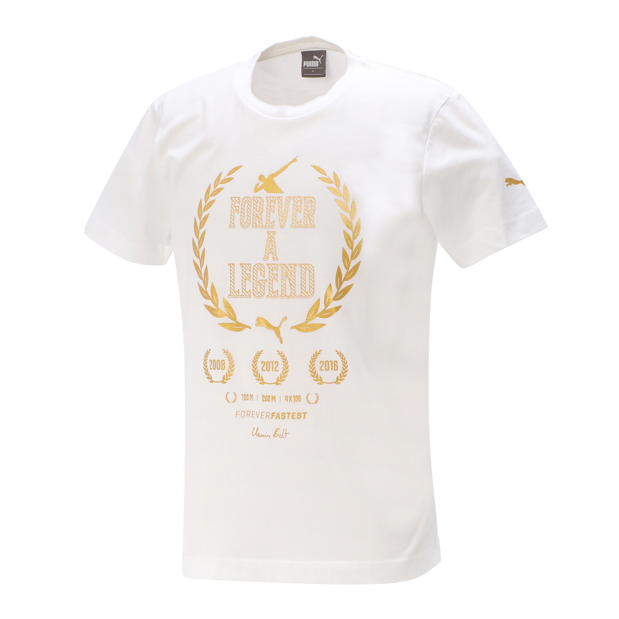 また、プーマストア オンラインと一部のプーマ取扱店のみで、ボルト選手の勝利記念Tシャツも限定発売されます。