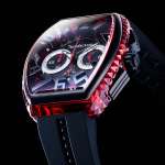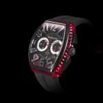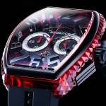 レッド×ブラックは疾走感溢れるモータースポーツの世界観を思わせますが、ダイヤルと“クル・ド・パリ”にあしらったクリア素材がナイトシーンにも似合う妖艶さを漂わせます。