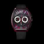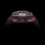 「TY860002-BK」は、インデックスとベゼルに鈍い輝きを放つガンメタリック、ダイヤルとケースサイドには神秘的なクリアレッド、分厚いストラップとダイヤルのセンターサークルにブラックを組み合わせたモデル。