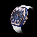 ケース側面を埋めるシースルーの“クル・ド・パリ”が生み出す陰影や、たっぷりとした厚みのあるシリコンストラップなどなど、ブランド得意のボリューミーな意匠がこれでもかと詰め込まれたとびっきりの個性派モデルです。