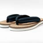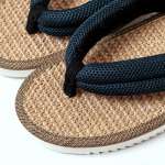 「ジュートモデル」は、雪駄の定番素材であるジュートをフットベットに使用し、足当たりのいいラッセル生地をダブルにした鼻緒を組み合わせ、古き良き雪駄の佇まいを色濃く残しています。