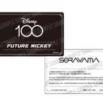 「Disney100 FUTURE MICKEYステッカー」はA6サイズでメタリック間にこだわった特別仕様。「Disney100」の記念ロゴと空山氏のロゴ、構想スケッチをステッカー化しています。