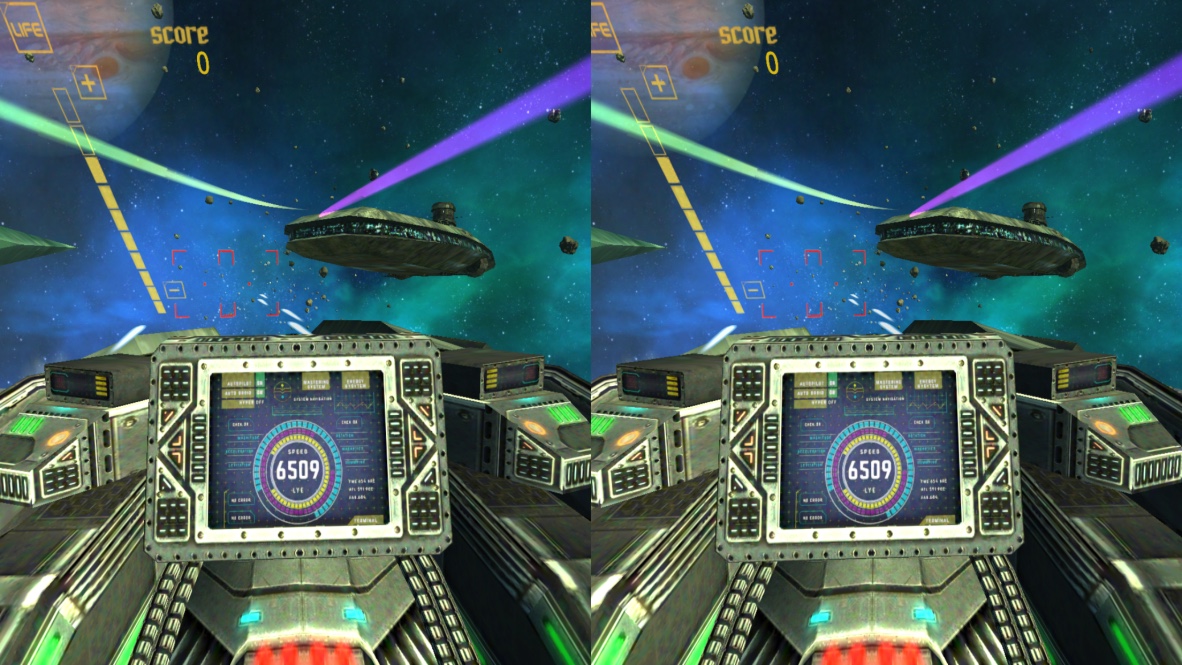 【BotsNew Wars】地球防衛隊のエースパイロットととなり、飛来する敵機を迎撃するシューティングゲーム。両手のコントローラーで自機のバルカン砲を操作する。