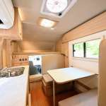“タウンエーストラック”がベース車となっている「VENUS」の車両サイズは、全長4m83cm、全幅1m89cm、全高2m76cm。広々とした居住スペースには、最大で大人4人と子供2人の計6人(大人のみなら計5人)まで、泊まることができます。