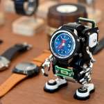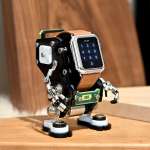 もちろん、アップルウォッチや他のスマートウォッチだけでなく、通常の腕時計も装着可能です。アナログな自動巻きやデジタルウォッチ、高級腕時計、もうはめなくなった腕時計などをはめ込めばロボットの表情が変わり、デスクウォッチ代わりとしても使えます。