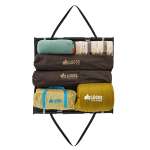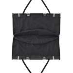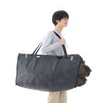 バッグの両端にジッパーが配置されており、ジッパーを閉じれば幅90×高さ47×マチ幅29cmの大型トートバッグが完成。キャンプ道具など、細かい荷物をたっぷりと入れられます。ジッパーを開いて左右両側を開放すれば、たたんだテントやテーブル、チェアなどの長尺ギアや薪も楽々と運搬可能。ハンドルは肩掛けできる長さなので、重い荷物もスムーズに運べます。