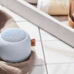 もちろんお風呂だけでなく、キッチンの周りやアウトドア、寝室での使用にもよさそう。ハンズフリー通話用のマイクも内蔵されています。カラーも豊富で、ブラック、クラウディーブルー、ダスティローズ、ダスティオリーブ、アイボリーサンド、コッタオレンジと、北欧デザインらしいオシャレな展開。ギフトにもぴったりですよ。