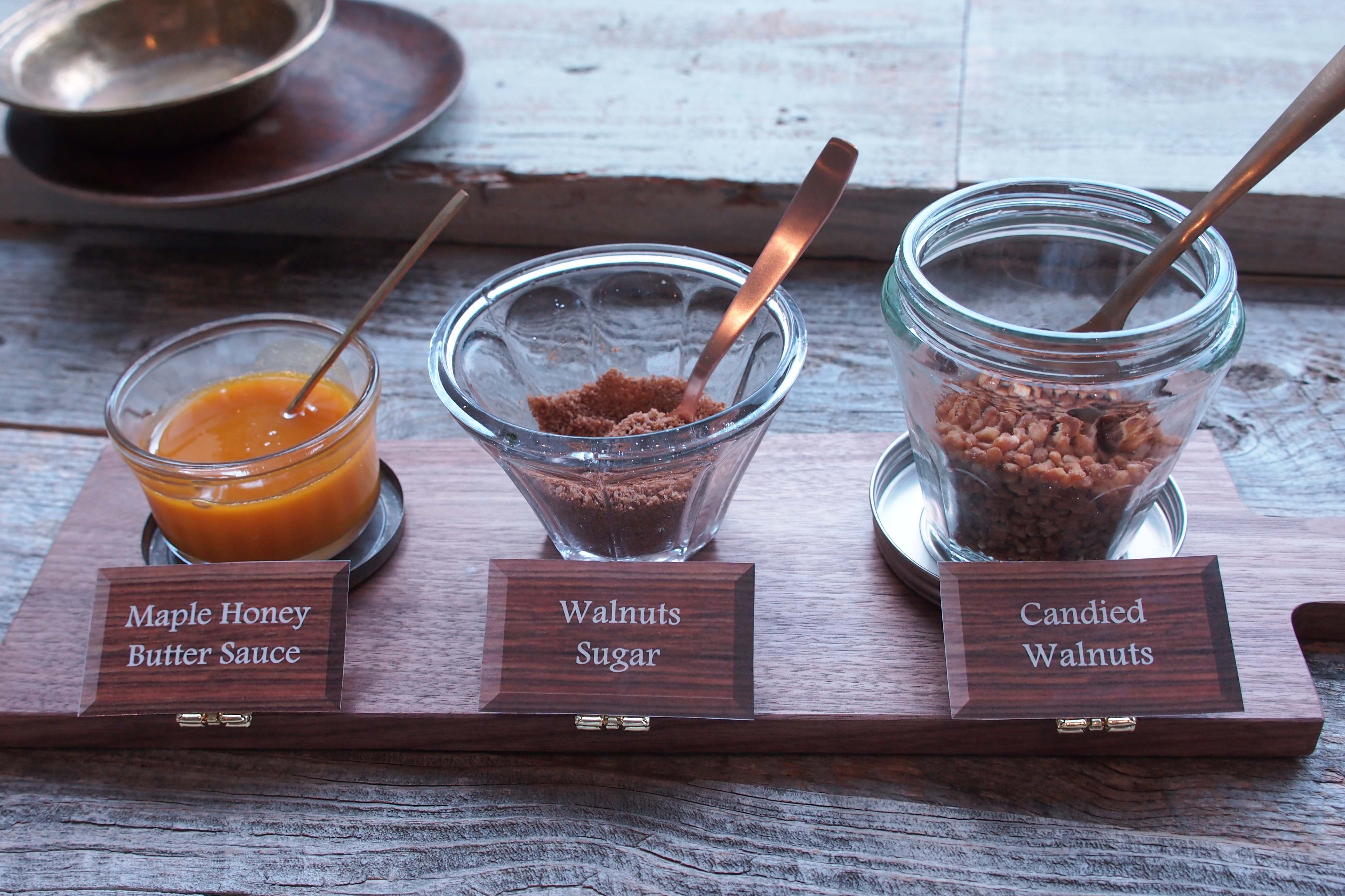 写真左にあるのが「メイプルハニーバターソース」。バターを加えることで、味にコクと奥ゆかさが生まれ、まったりとした濃厚なソースに仕上がっています。