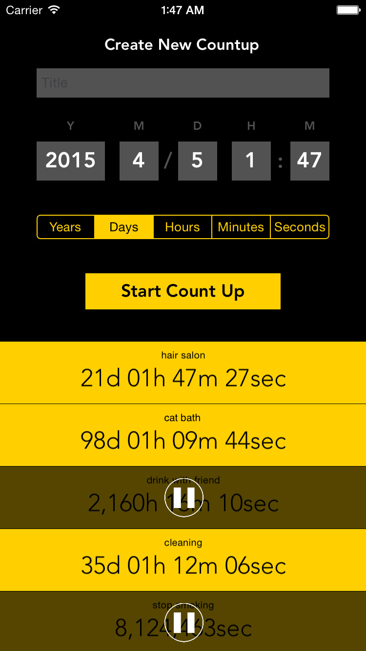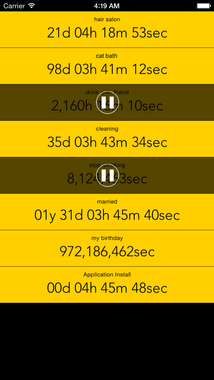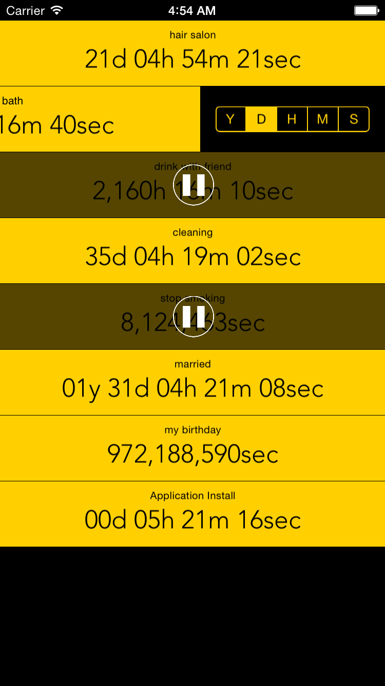 カウントをいったん停止することができる「一時停止」機能もなかなか便利。ジムでトレーニングしている時間を積算していく、パソコンの前に座っている時間を積算していく、通勤に年間何時間かかるのかを積算していく、などなど、何かをしている間の合計時間を、そのつどカウントに加えていくことができ、健康管理などに役立てることができる。