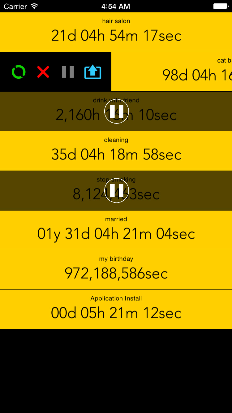 特徴となるのが、Lifecount独自の「Refresh」機能。それまでのカウントを“ヒストリー”という場所へ蓄積し、新しいカウントを始められる機能で、前回髪の毛を切ってから、エアコンのフィルターを交換してから、トイレットペーパーを買ってから、といったカウントの記録を残しておくことができる。こうした記録をチェックすることで自分の生活サイクルを把握することができるので、TO DOリストとして活用するのもいい。