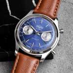 スポーティに装うなら1970年代のツーカウンタークロノグラフから着想を得た「クロノグラフ 1970」(41万2500円)を。ムーブメントにはセリタ社の手巻き式SW510を採用。スタイリッシュな佇まいはビジネスシーンはもちろんプライベートタイムにも似合いそう。手元に華やぎを添えるホワイト×ブラック、ピンクダイヤルモデルの限定モデルも登場しています。