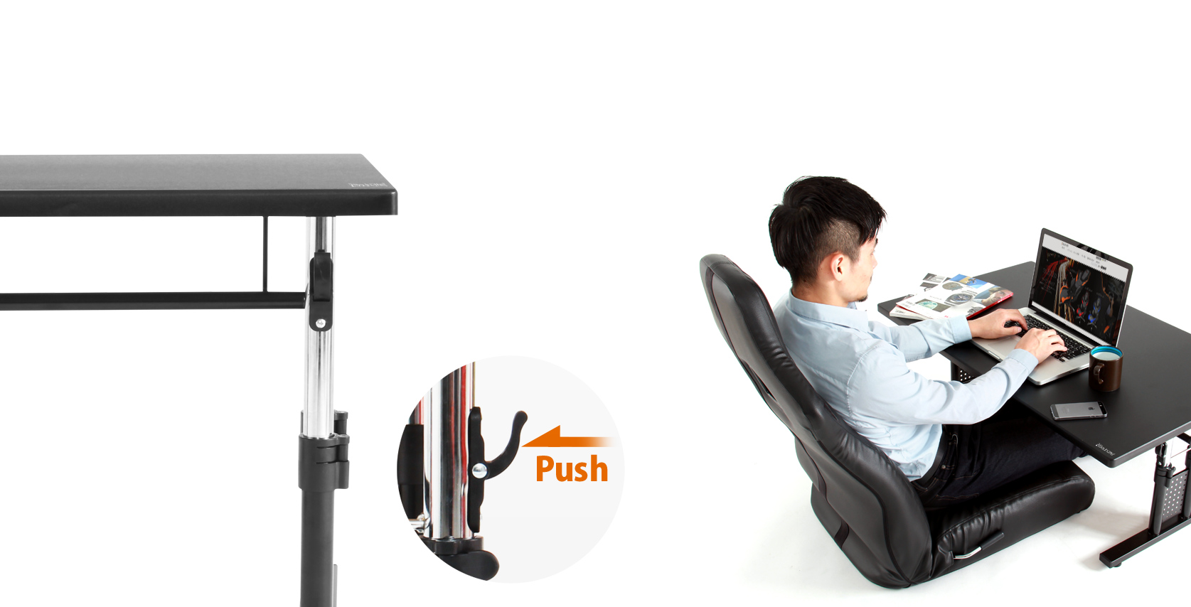 天板の高さを自在に調節できる「昇降式デスク BHD-1000L」と組み合わせれば、無敵のゲーム環境が完成だ。