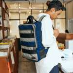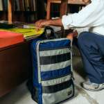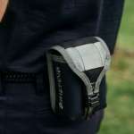バッグに使用しているのは、1000Dコーデュラナイロンと1050Dバリスティックナイロンを掛け合わせたタフで軽い生地。かつて人気だったカラー“MIDNIGHT”とグレーに近い“FOLIAGE”カラーとを組み合わせ、背面やウェビングテープなどのパーツにブラックを採用することで全体の印象を引き締めています。ロゴやステッチなどに使用したレッドがデザインのアクセントに。