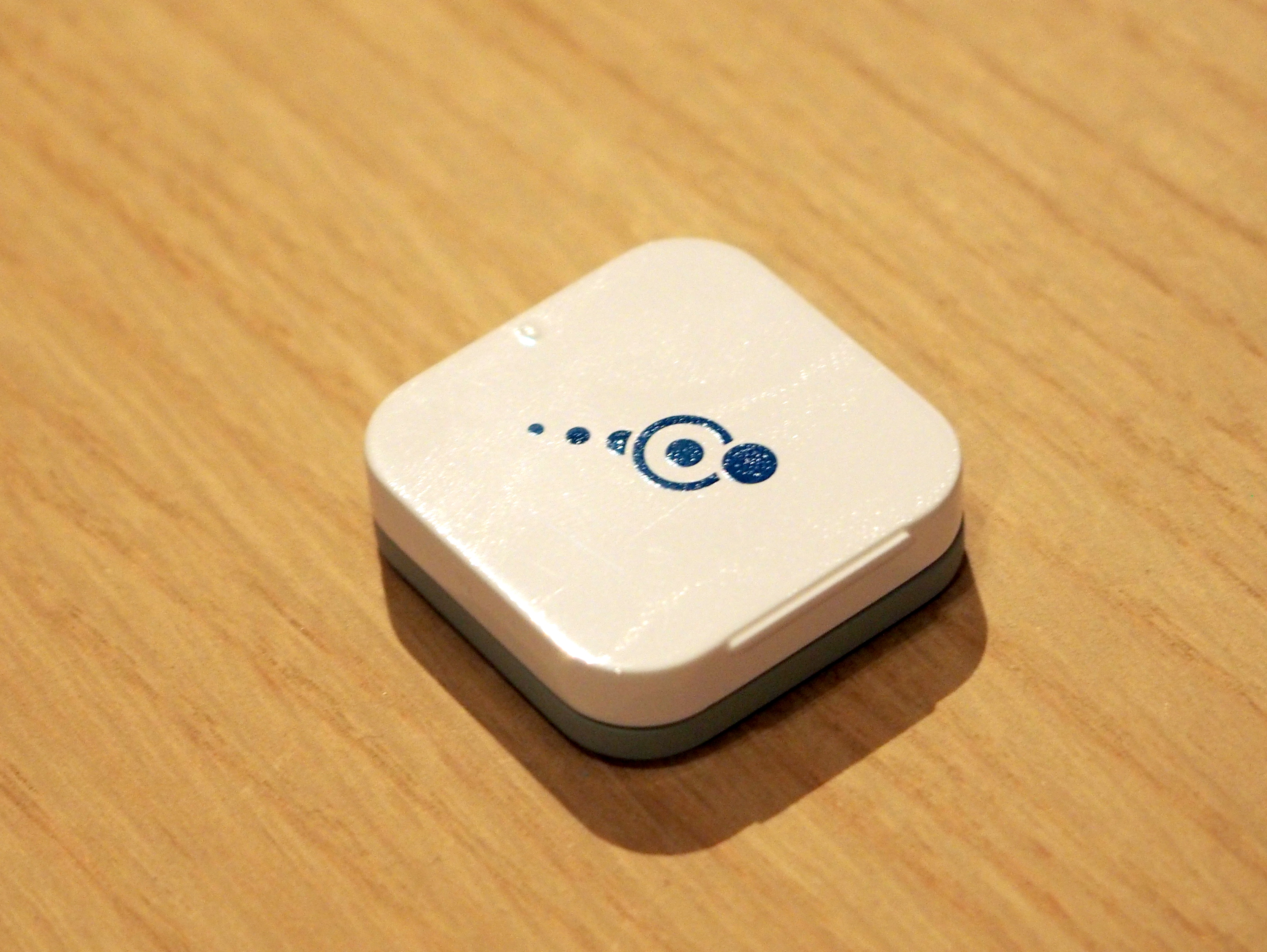 加速度センサーを搭載したBluetoothタグ「bPoint PIN(ビーポイント ピン)」。ドアに設置するとドアの開閉が感知できるのが特徴です。スマホと連携させて鍵などの小物にくっつけると、一定の距離を離れると音を鳴らすなどの使い方が可能です。