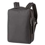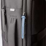 容量は22Lですが、マチを広げられる拡張機能により最大27Lまで拡張できるので、普段使いから荷物の多い出張時まで活躍します。背面にはキャリーケースのバーに通すことのできるベルトも搭載。