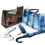 今の季節に必須の長傘と折りたたみ傘、それに夏のレジャーにぴったりなビーチバッグ2種の合計4モデルです。