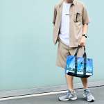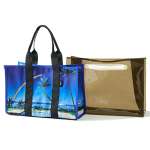 また、水辺のレジャーなどアクティブなシーンで活躍しそうなのが「ビーチバッグ」(各5390円)。トートタイプの大型クリアバッグに永井氏のアートワークをほどこしたインナーバッグを重ねたもので、本体サイズは幅42×高さ30cm、マチ16cm。