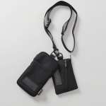 「mobility line wallet pouch set shoulder」は、ショルダーストラップの先にウォレットとスマートフォンケースの2つを備えたアイテム。どちらか片方を取り外して使うこともできます。