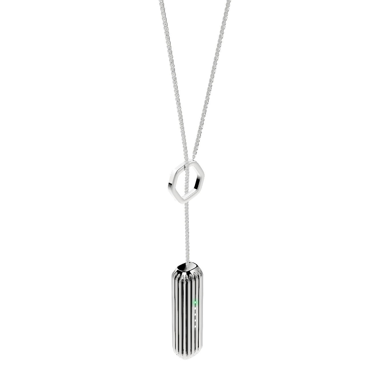 リストバンドは好きな色に交換できるのがポイント。服装に合わせてアクセサリー感覚で身に付けられます。シルバーステンレスのバングルや、22Kゴールドの表面加工が施されたゴールドとローズゴールドのバングル、シルバーステンレスと22Kゴールドの表面加工が施されたステンレスのエレガントなペンダントネックレスなど、オプションは豊富です。