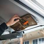 クルマのサンバイザーに取り付けて収納スペースを確保できる「ビヨンドストレージ サコッシュ&サンバイザー」(4290円)はチケットやサングラスなど、小物の収納に便利なアイテム。