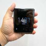 ▲折りたたみ時のサイズは約88.42×73.95×15.1mmで、手のひらでがっしりと掴めるサイズ感。重さは約188gで、一般的なスマホと変わらない。閉じた状態でも約3.6インチ(1066×1056)のディスプレイを利用できる