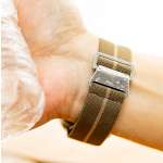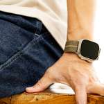 ボリューム感のある現行Apple Watchのサイズを考えて、バンドの幅は旧モデルよりも2mm広い24mmへと変更。よりワイドになったバンドが、大事なガジェットをしっかりサポートしてくれます。一般的なストラップと違い、バンドそのものが輪のようにつながったデザインなので、手首への脱着の際にうっかり落下させるリスクが少なくて済むのもいいですね。