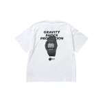 「LUMINOUS LOGO T-SHIRT」は、バックプリントが印象的なヘビーウェイトTシャツ。G-SHOCK PRODUCTSのメインロゴと“GRAVITY、SHOCK、PROTECTION”のキーワードを、G-SHOCKのバックライトを思わせる青緑のティールカラーを蓄光プリントで施しており、暗所で光りを放つ仕様です。