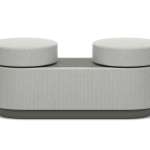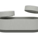 丸みを帯びたフォルムや、グリル素材にホワイトグレーのファブリックを用いた柔らかな質感など、インテリアになじみやすい洗練されたルックス。ファブリックには、ペットボトルから作られた100%リサイクル素材を採用するなど、環境負荷の低減に配慮している点も魅力です。
