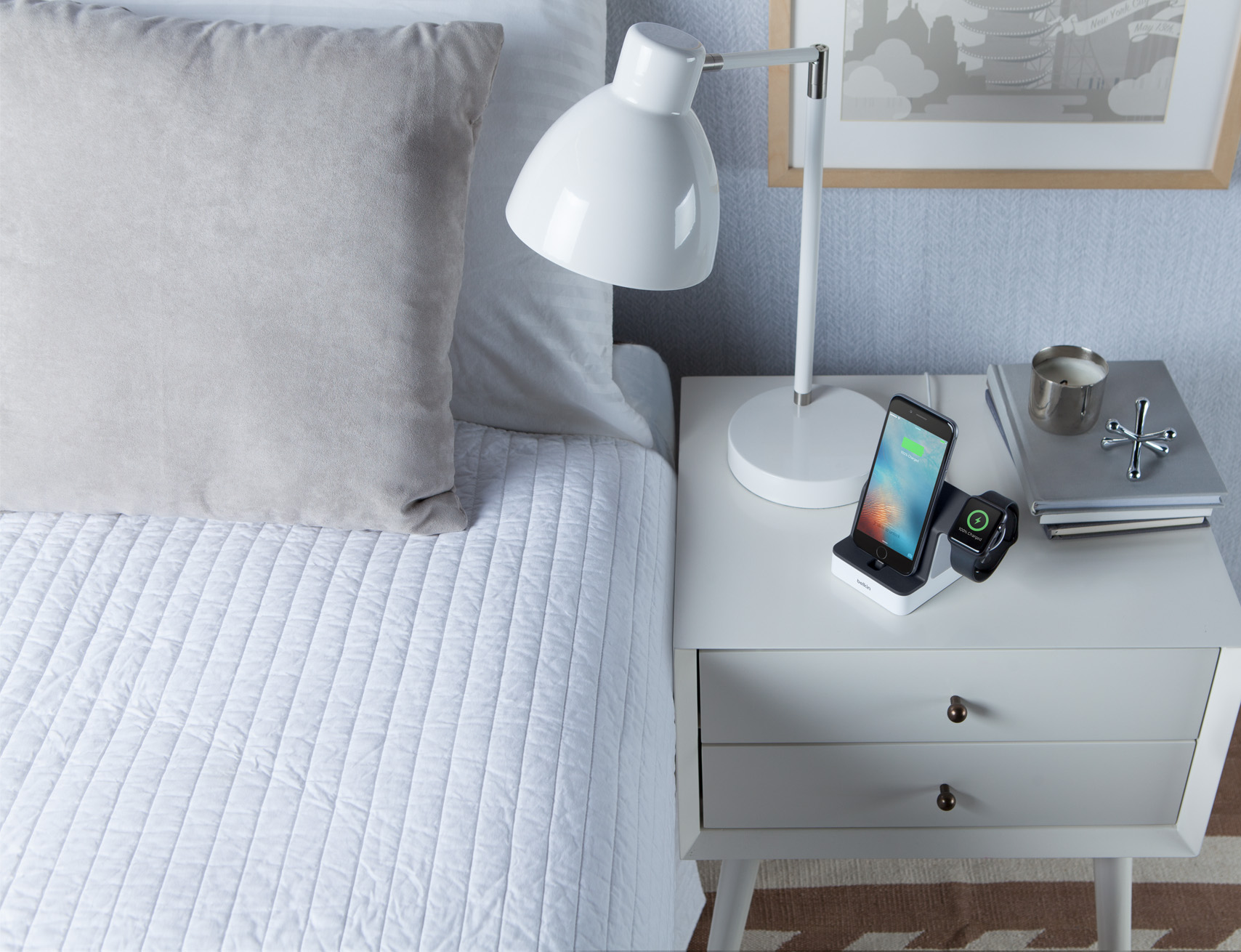 シンプルでコンパクトな外観は、iPhoneやApple Watchを見やすい角度に保ちつつ、どこに置いても馴染みの良いデザインです。
