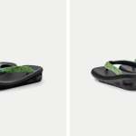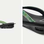 木の葉や実などをモチーフとしたこれまでのボタニカル柄とはまたひと味違った、幾何学模様のようなテイストも感じられる、オリジナリティのあるデザインが印象的です。ブラックのベースにグリーンを基調とした鼻緒が映え、男女問わず似合うデザインとなっています。