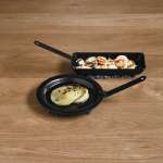 「Tetsu Sara set」(1万1000円)なら、オリジナルのハンドル付きです。プレートはお皿としても使えるので、コンロで調理したらプレートのまま食卓に運べば、そのまま出来たての料理を食べられます。ハンドルは、同シリーズの「Tetsu Grill」にも使用可能。