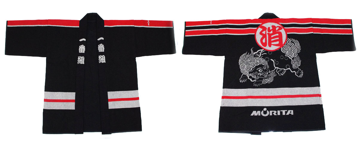 法被は、消防団員の制服や、出初式の梯子乗りの際に着用されるなど、消防には欠かせないアイテム(1万4700円)
