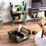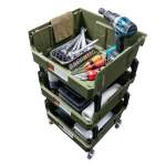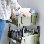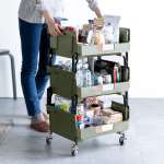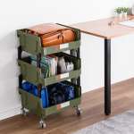 トレーひとつあたりの容量は、21Lと大きく、収納するものを選びません。カラーもカーキで、収納家具としての存在感をそれほど感じないのも良いですね。オフィスでも、ガレージでも、キッチンでも、周囲のアイテムとうまく馴染んでくれそうです。